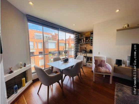 Ubicado en Santa Bibiana, Bogotá, con un área de 70,94 m² en cuarto piso, destacándose por su excelente iluminación natural y distribución funcional. Cuenta con hall de acceso, amplia zona social de sala comedor con balcón,chimenea y espacio para estación de café, moderna cocina abierta integrada al área social y zona de lavandería independiente con ventilación natural. La alcoba principal dispone de walk-in closet, baño privado y balcón; además, una cómoda habitación auxiliar y baño completo adicional. Incluye dos parqueaderos en línea y depósito.